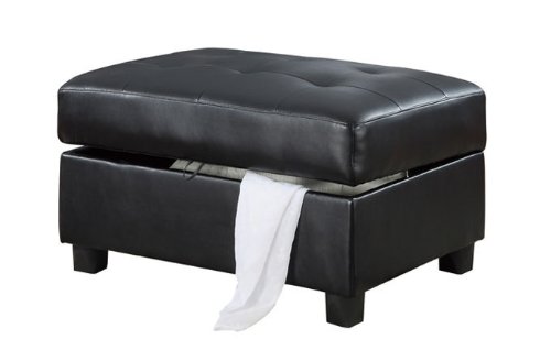 BLACK BONDED LEATHER MATCH STORAGE OTTOMAN BY POUNDEX Features